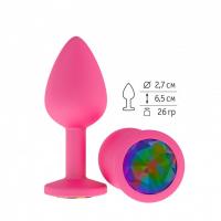 Анальная втулка силиконовая розовая c разноцветным кристаллом (516-14 multicolored-DD)