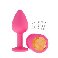 Анальная втулка силиконовая розовая с оранжевым кристаллом (516-10 orange-DD)