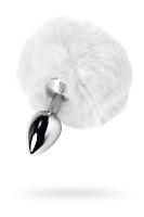 Анальная втулка TOYFA Metal, маленькая, металл+искусственный мех, серебряная, с белым хвостиком, 4,