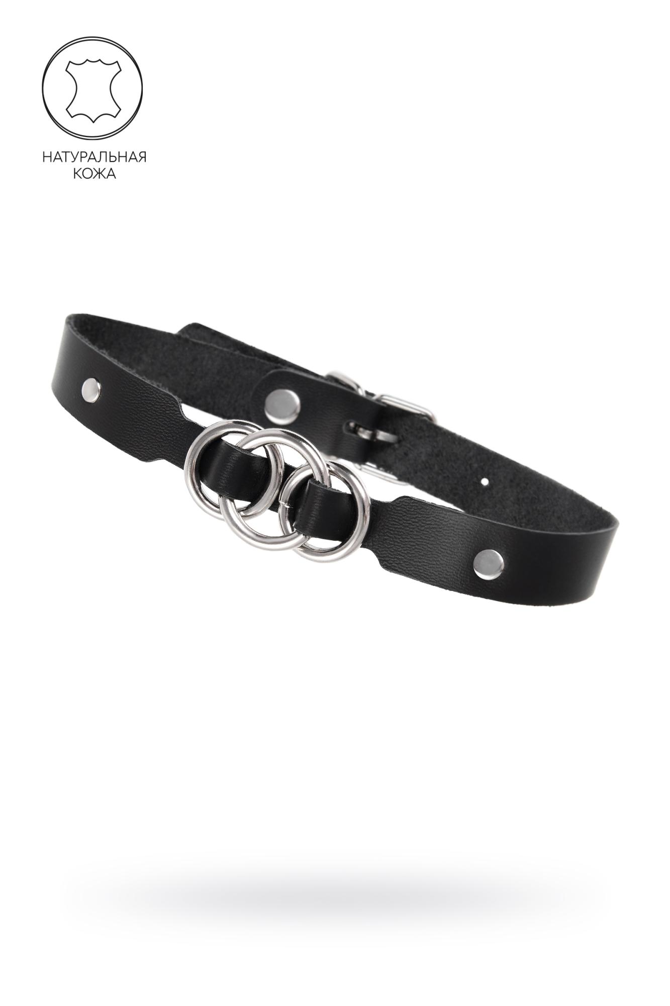 Чокер-ошейник Pecado BDSM, со связанными кольцами, натуральная кожа, чёрный (УТ-00004649)