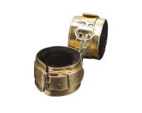 Изготавливаются из искусственной кожи. С внутренней стороны подклада их мягкого меха. При изготовлении использована фурнитура с никелевым покрытием. Соединяются между собой коротким ремешком с двумя карабинами на концах. Не нарушают кровообращение, надёжно фиксируются на запястьях. Размер универсальный. Цвет золото.