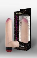 Вибромассажёр телесного цвета. Имеет форму члена с ярко выраженной головкой. Необычайно приятный, рельефный, выполненный из материала неоскин, передающий эффект мягкой реалистичной текстуры кожи, не имеет швов.